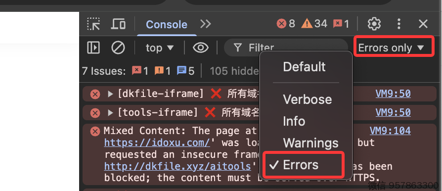 看图,勾选 Error ,把其他勾选都去掉(点击去掉)