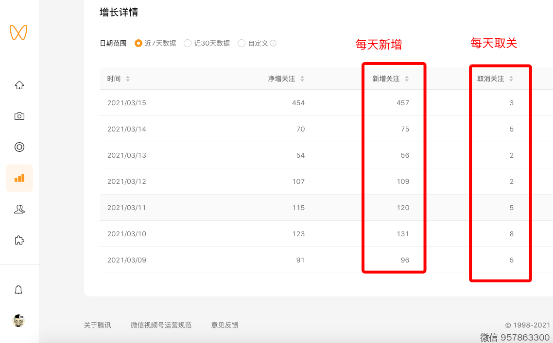 视频号,查看每天的新增关注用户、取消关注用户