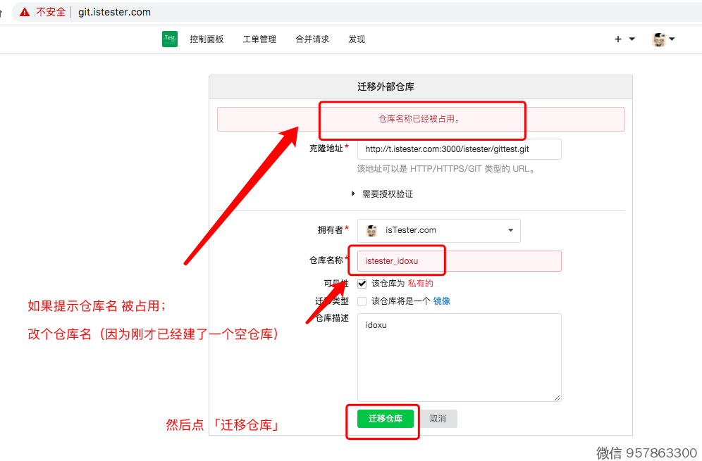 补充:仓库内容比较大,点迁移后,坐等,一般要几分钟,慢慢等,不用管;