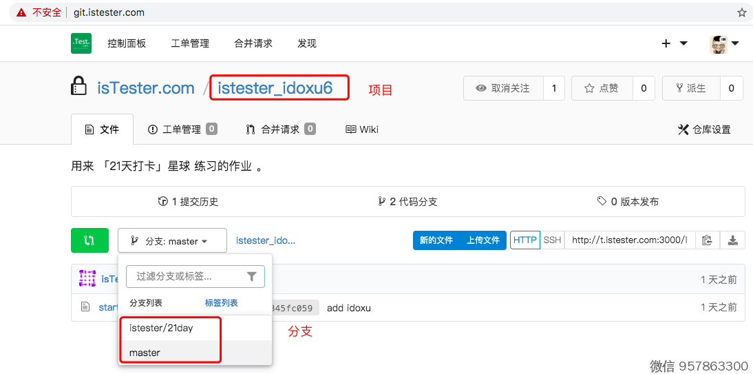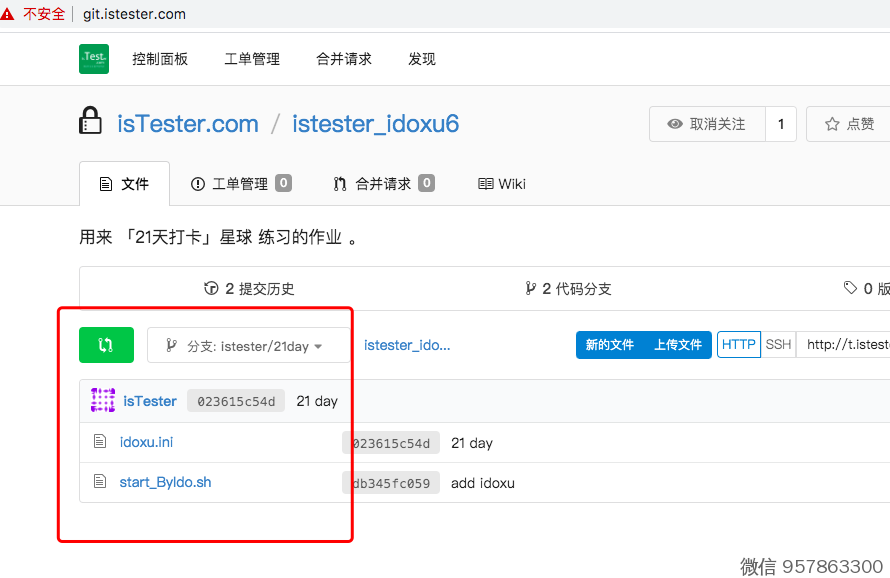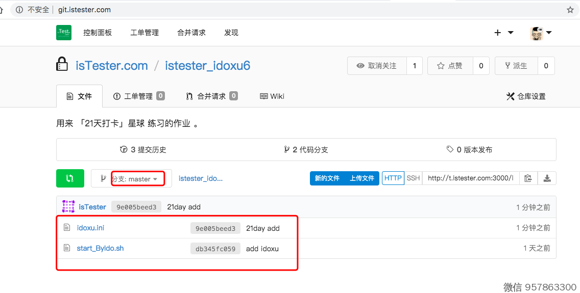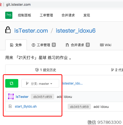 3、接下来,我们把 istester/21day 的文件,合并到master分支