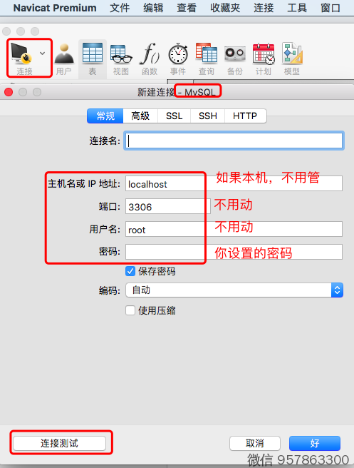 按照上图,填写完成后,点「连接测试」,如果能成功,说明填的信息没问题 ;